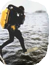 Wednesday saw the boat travelling to the SE side of the mainland, to dive the 65m deep wreck of the Giraldo, possibly for the first time. At the bottom of the shot line it was very dark, but the water was clear in the torchlight. During the 20 minutes on the wreck it was apparent that it was upright but well broken up. There was a lack of brass, but one of the divers managed to find and send up a brass pump. No sign of propellers or rudder or of the ship's bell! Once everyone was on board, after the usual 45 minutes of decompression, it was off to South Ronaldsay for the night, where the evening was spent dining like lords in The Creel. |